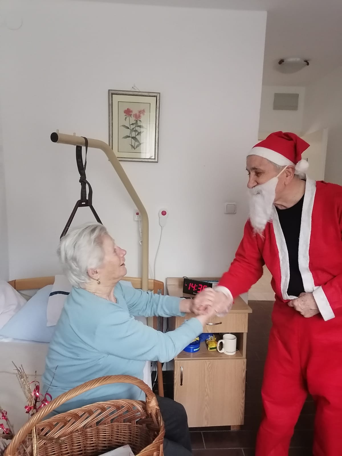Blagdansko razdoblje dodatno je obogaćeno posebnim posjetom Djeda Mraza, koji je svojim dolaskom unio veselje i osmijehe među korisnike. Topla riječ, stisak ruke i mali znakovi pažnje stvorili su trenutke koji su mnoge vratili u djetinjstvo i blagdane iz prošlih vremena. Takva druženja imaju veliku vrijednost jer razbijaju rutinu, potiču pozitivne emocije i jačaju osjećaj pripadnosti zajednici doma.