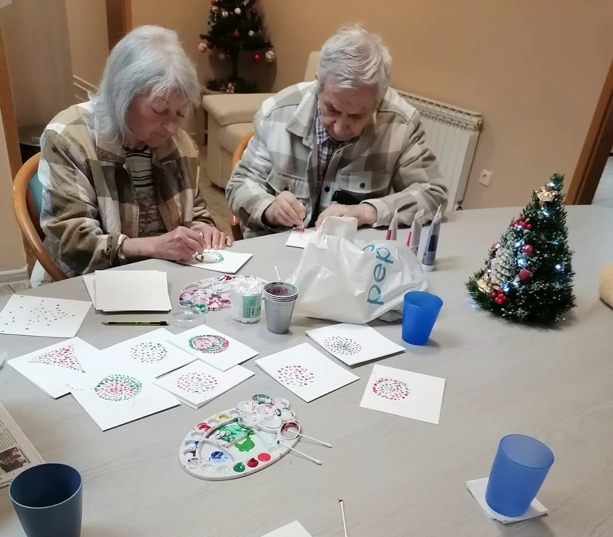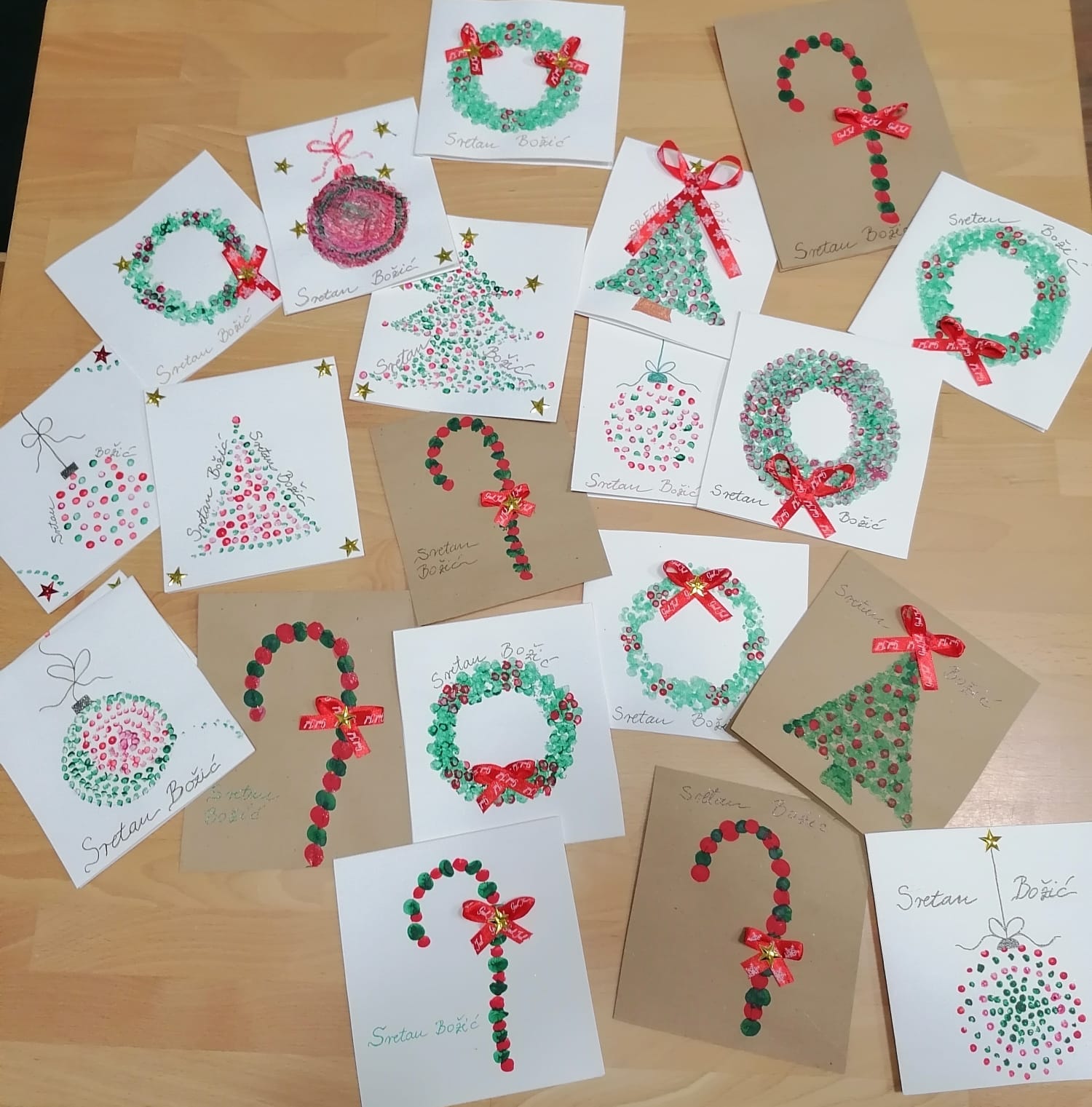Jedna od omiljenih aktivnosti bila je kreativna radionica izrade božićnih čestitki. Korisnici su različitim tehnikama izrađivali čestitke za svoje najmilije, birajući boje, motive i poruke koje su im bile posebno bliske. Svaka čestitka nastajala je s puno pažnje i emocija, a sama radionica poticala je finu motoriku, koncentraciju i kreativno izražavanje. Najveća vrijednost ove aktivnosti bila je mogućnost da korisnici kroz vlastiti rad izraze ljubav i povezanost s obitelji i prijateljima.