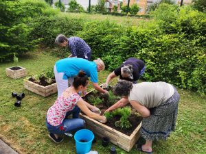 Naši korisnici iskoristili su ugodnije vrijeme krajem prošlog tjedna tako da su u dvorišu našeg doma zasadili mentu, origano, melisu, bosiljak i ružmarin. Sada će im tijekom ljetnih mjeseci boravak u dvorištu uljepšavati prekrasni mirisi začinskog bilja. Pošto je popustila vrućina, u dvorište su izašli i ljubitelji društvenih igara te tamo odigrali nekoliko partija.